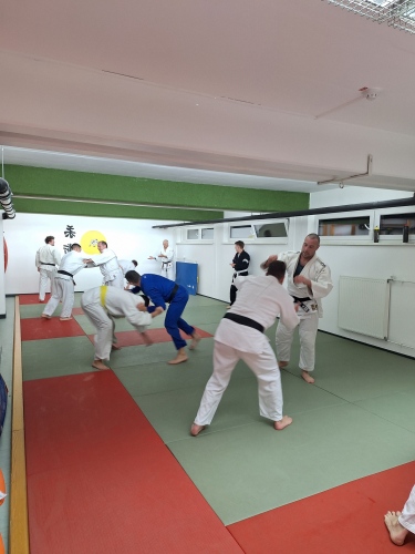 V večernih urah smo izvedli dinamičen in raznolik skupinski trening, na katerem so združili moči mladinci, tečajniki samoobrambe in članska skupina. Trening smo začeli z vajami za moč, nadaljevali s ponovitvijo tehnik iz drugega dela, zaključek pa smo popestrili s prijateljskimi borbami v parterni tehniki. Trening je vodil trener Gaber, ki nas je ves čas spodbujal in skrbel za odlično energijo, da je trening potekal v sproščenem, a hkrati motivacijskem duhu. Po zaključku smo se zbrali v klubskih prostorih, kjer smo opravili kratko »analizo« in prijetno zaključili večer ob pogovoru in druženju. Ob iztekajočem letu pa vsem članicam in članom PKBV želimo zdravo, srečno in predvsem uspešno novo leto 2025!